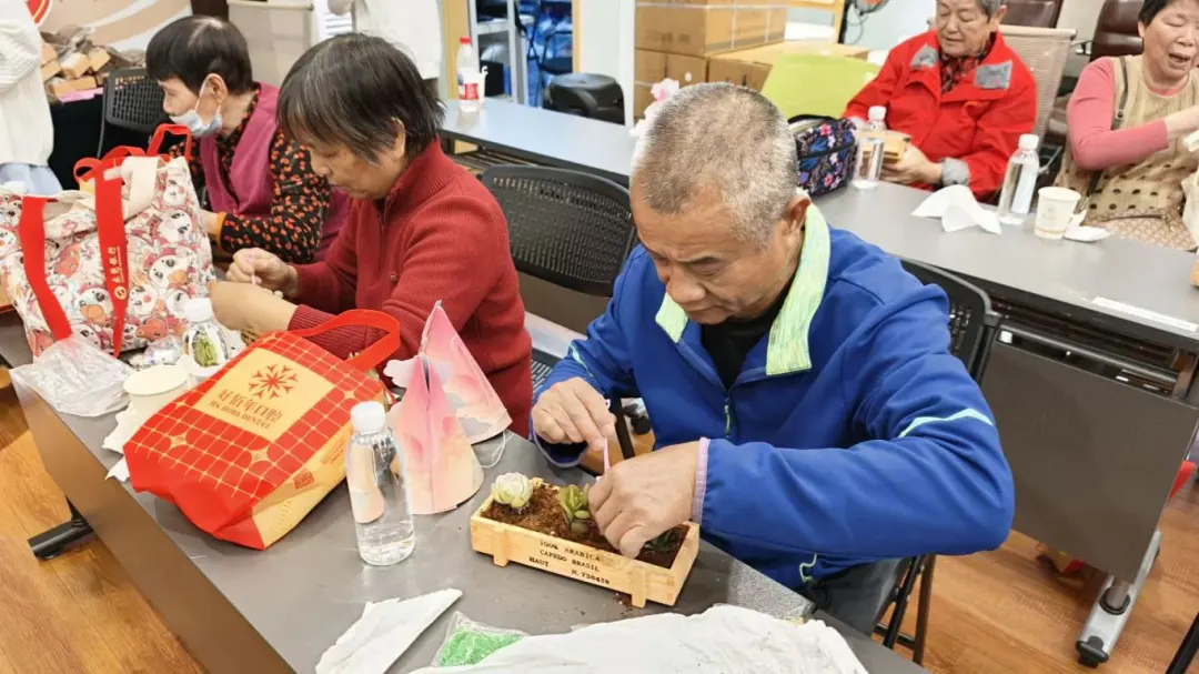 恰逢植树节,现场还设置了多肉微景观DIY环节。精致花盆、鲜活多肉、彩色石子一应俱全,寿星们亲手栽种多肉、打造微景观,在指尖劳作中感受春日生机,也让这份治愈与美好常伴身边。